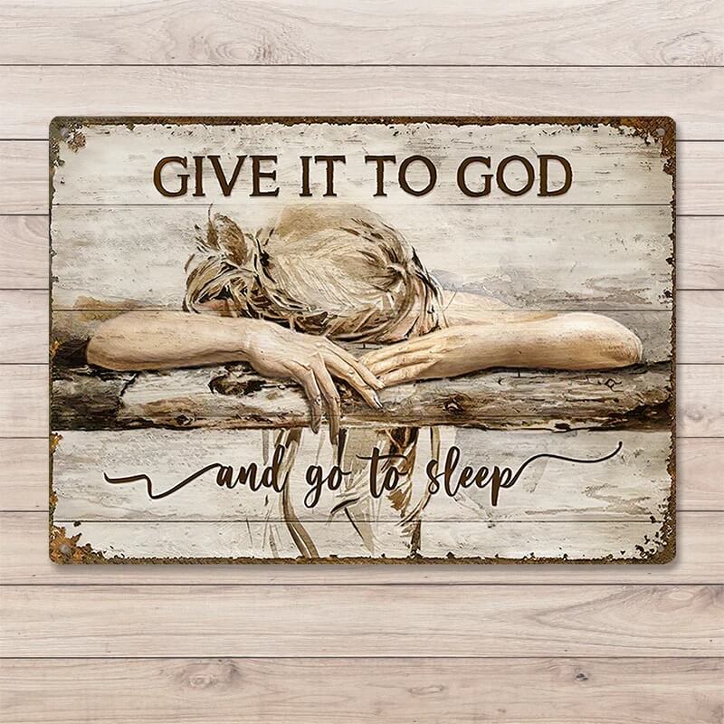 Give It To God And Go To Sleep Metal Sign Decor Vintage Tin Signs, Jesus Christian Wall Art Decor