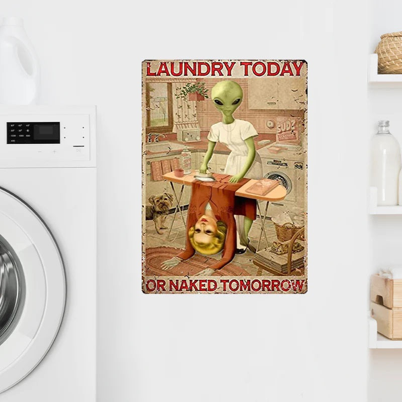 Laundry Today Or Naked Tomorrow - Laundry Metal Sign - Creepy Alien Sign Gift For Friends Personalized Custom Metal Sign