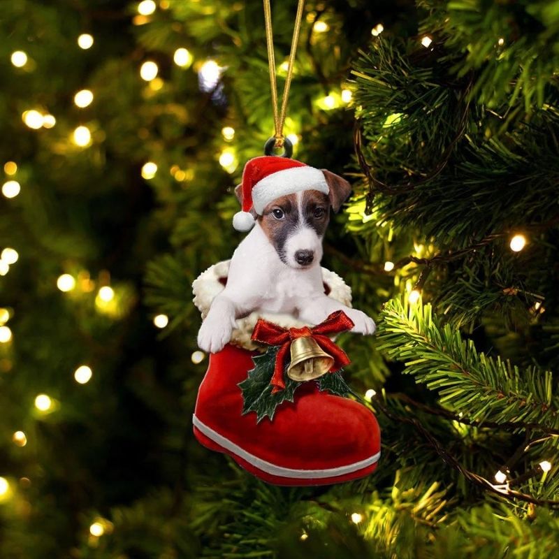 Nova Scotia Duck Tolling Retriever In Santa Boot Christmas Hanging Ornament SB164