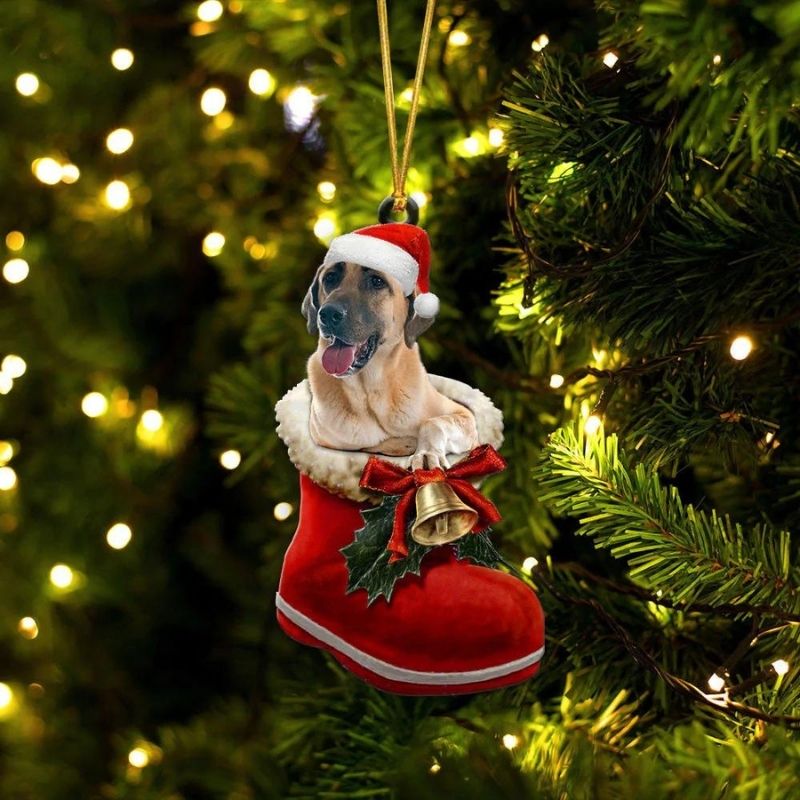 French Bulldog Brindle and White In Santa Boot Christmas Hanging Ornament SB182