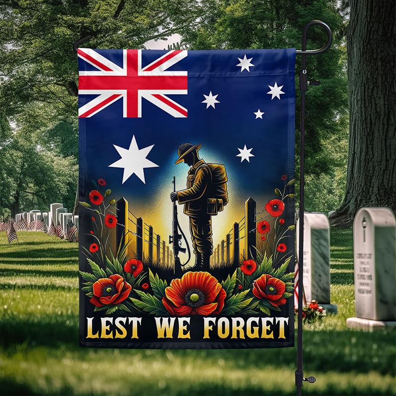 Lest We Forget. Anzac Day. Poppy Veteran Grommet Flag