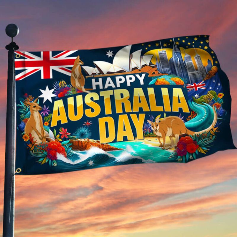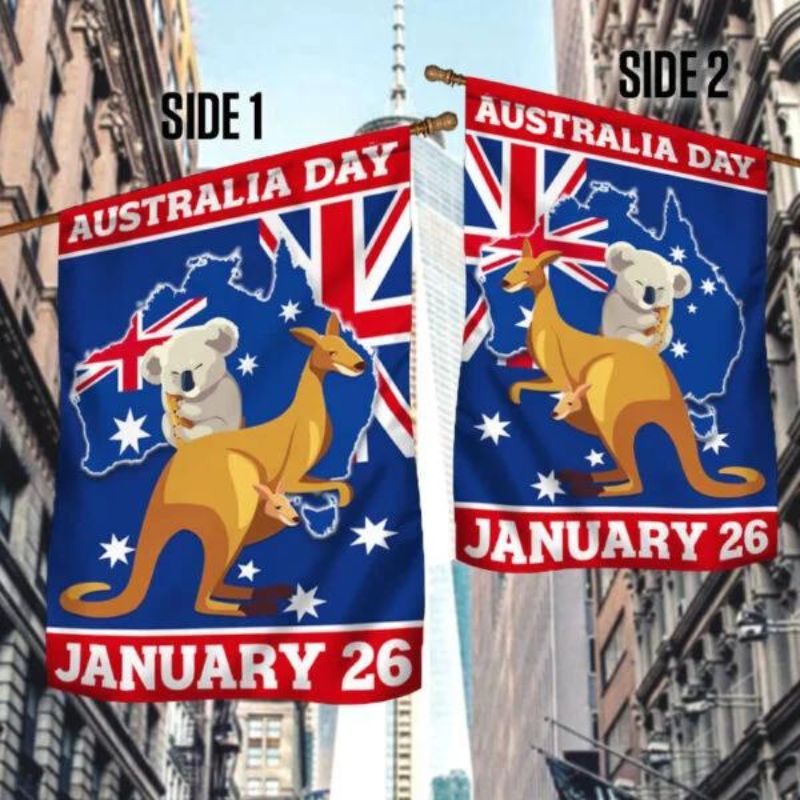 Happy Australia Day January 26th Koala and Kangaroo Australia Flag