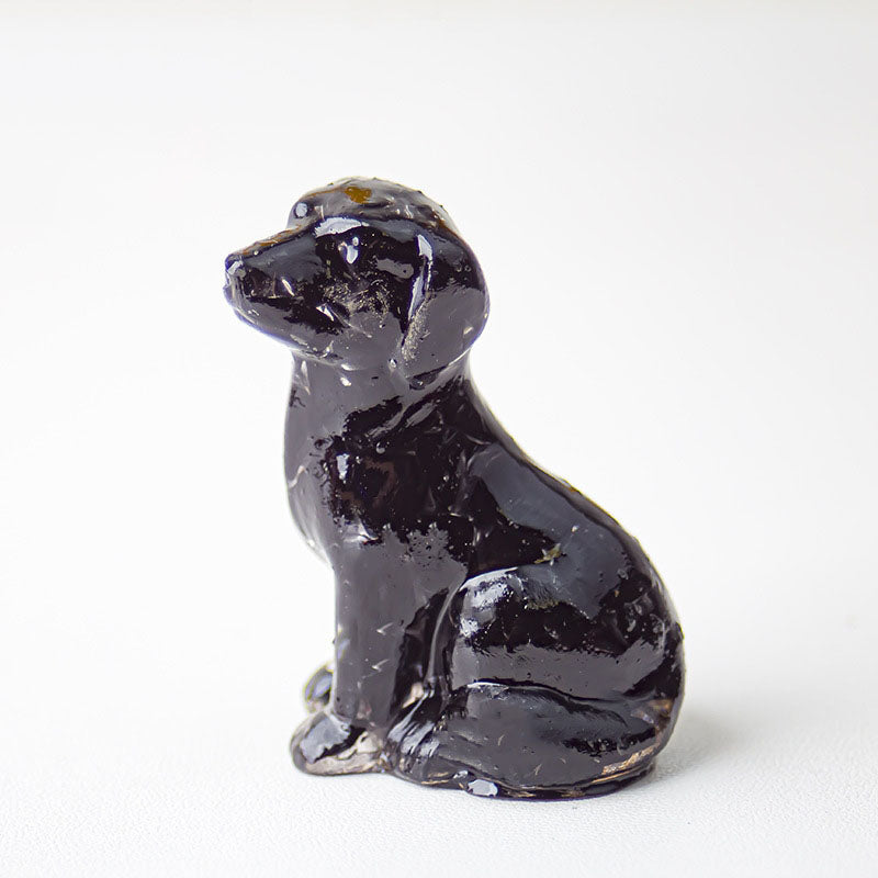- 1 x Handmade Natural Crystal Gemstone Sitting Dog - Obsidian