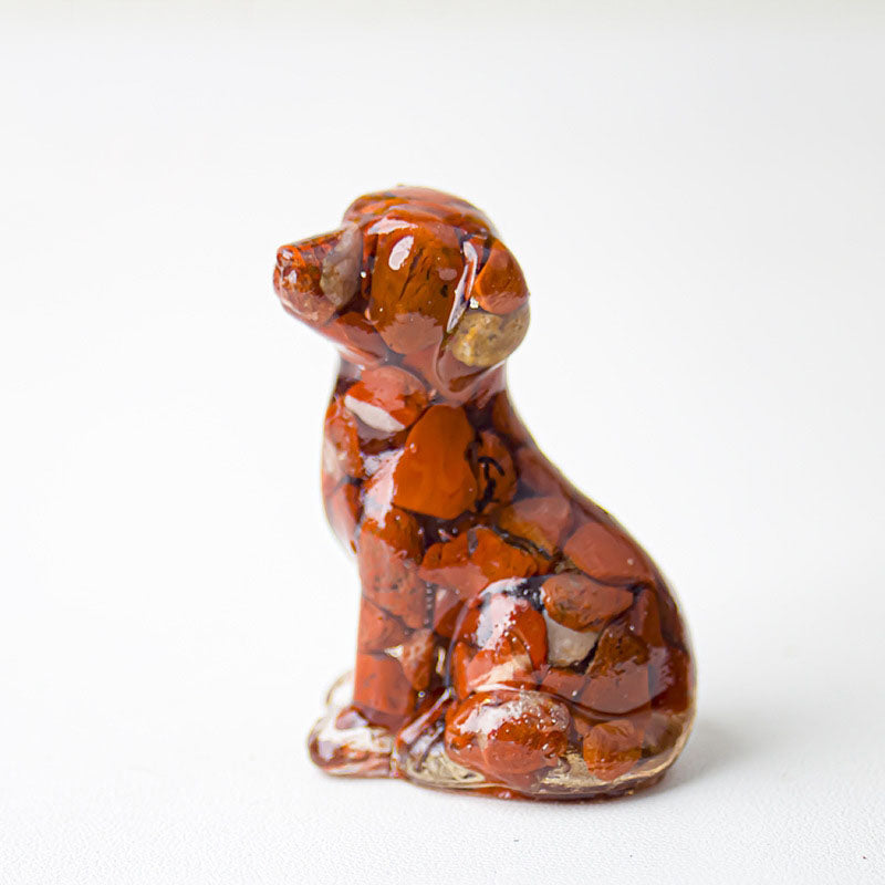 - 1 x Handmade Natural Crystal Gemstone Sitting Dog - Red Jasper