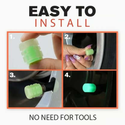 Fluorescent valve caps protect tire valves from dust and prevent leaking while adding a shiny and luxurious look to your car.