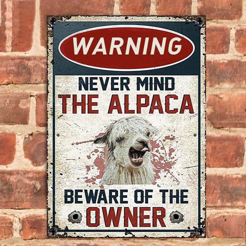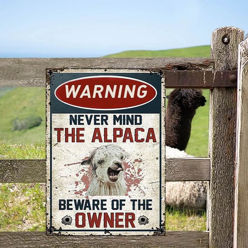 Alpaca Lovers Gift Beware Of The Owner Metal Sign