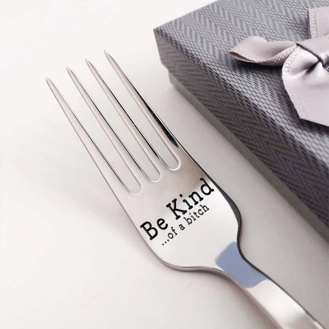 🎉 Made from high-quality stainless steel, our forks are engraved to perfection with "Be Kind...Of A Bi♥ch".