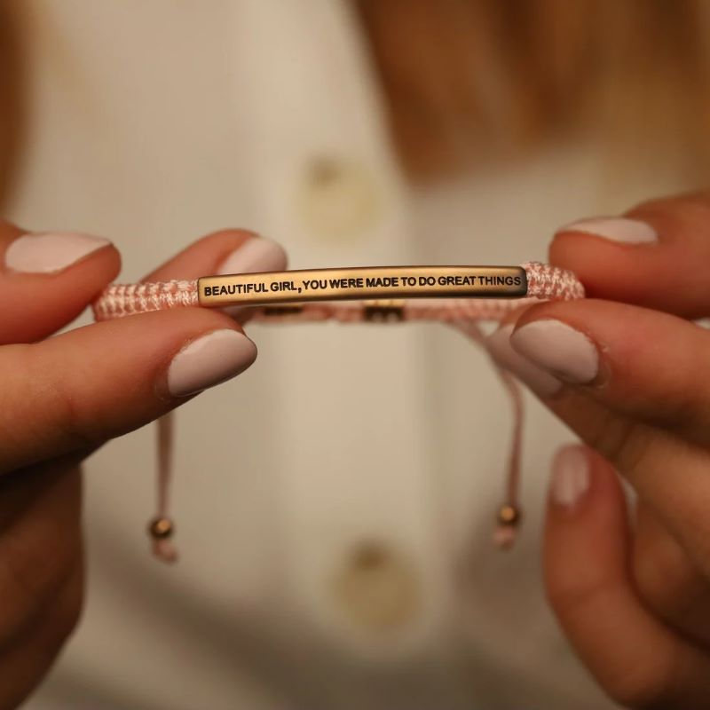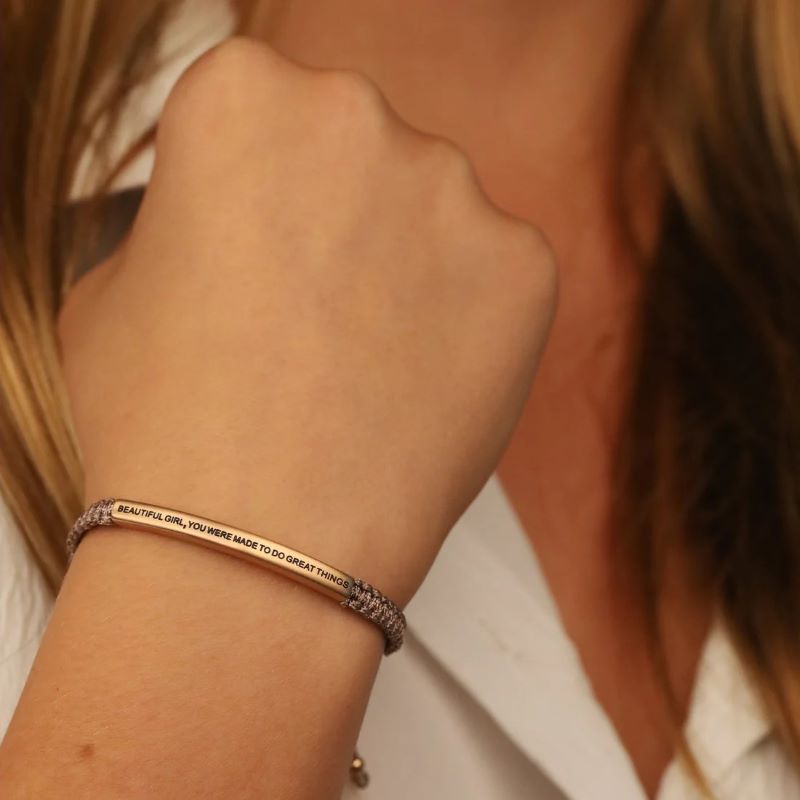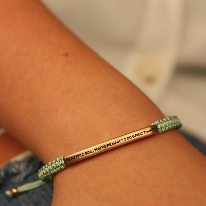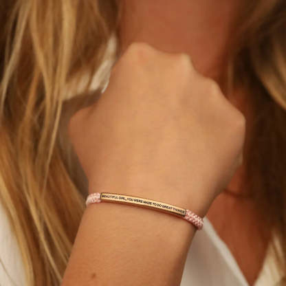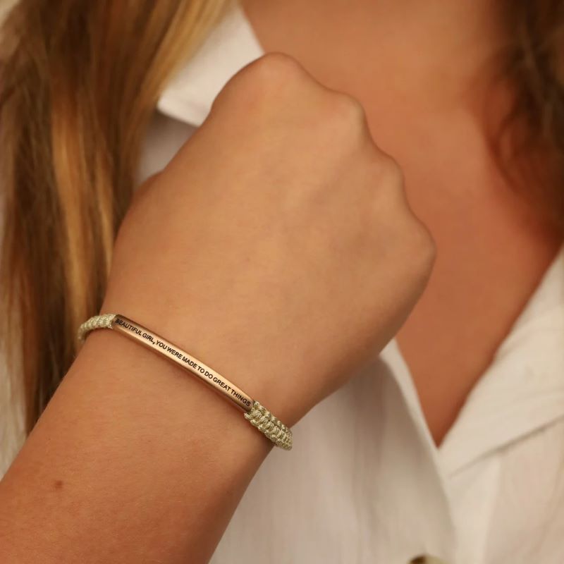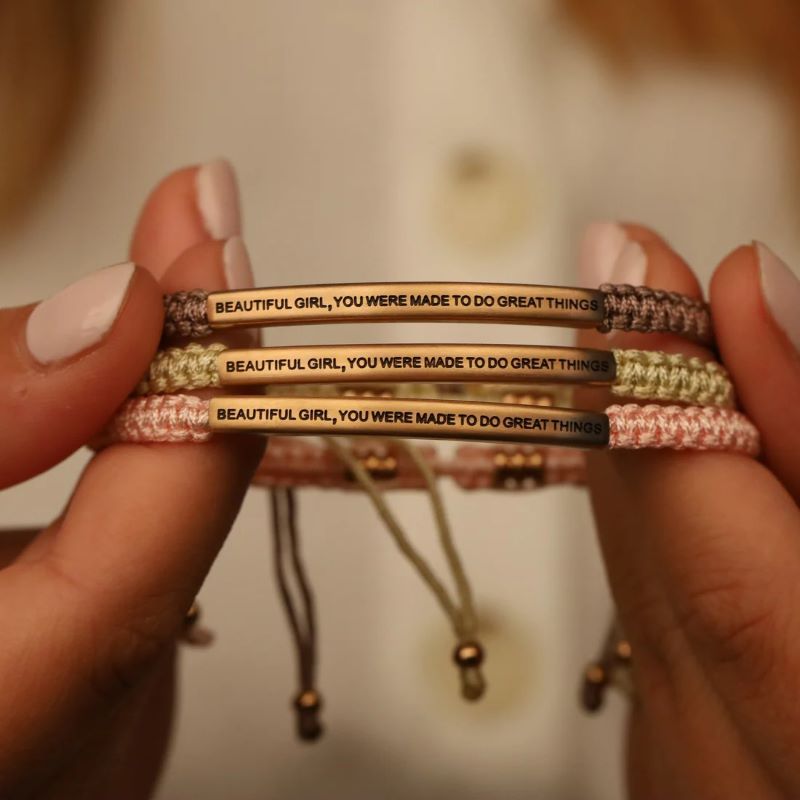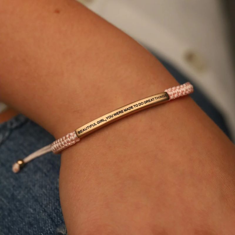 When you feel doubt and fear, look down at your bracelet and remember BEAUTIFUL GIRL, YOU WERE MADE TO DO GREAT THINGS.