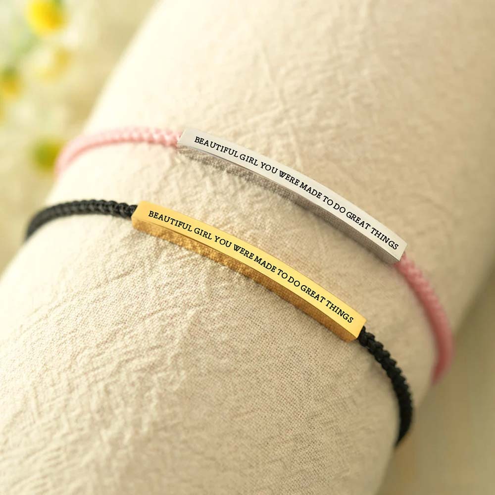 Carry a constant reminder of your strength and potential with the "Beautiful Girl, You Were Made To Do Great Things" bracelet.