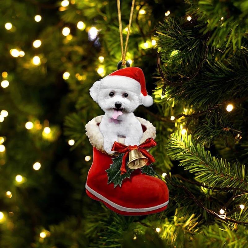 Bichon In Santa Boot Christmas Hanging Ornament SB016