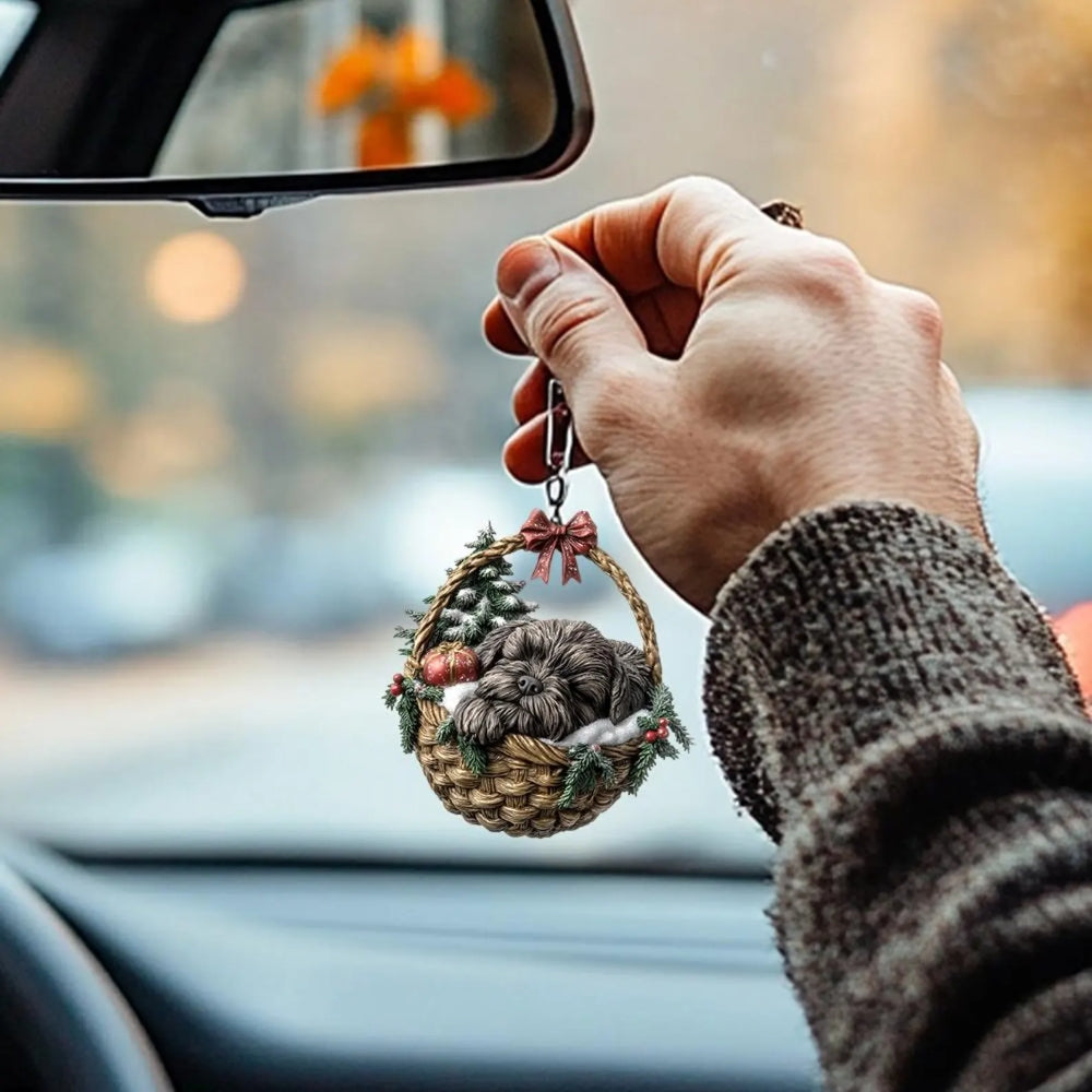 Our Mini Baskets Ornament adds a touch of whimsy and warmth to your home. Perfect for dog lovers, this decor features a charming and playful design depicting a peacefully sleeping pooch. Whether you hang it on your Christmas tree, use it as a keychain, or simply display it on your bookshelf, it'll bring a touch of cheer to any space.