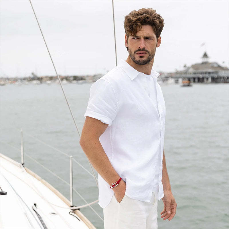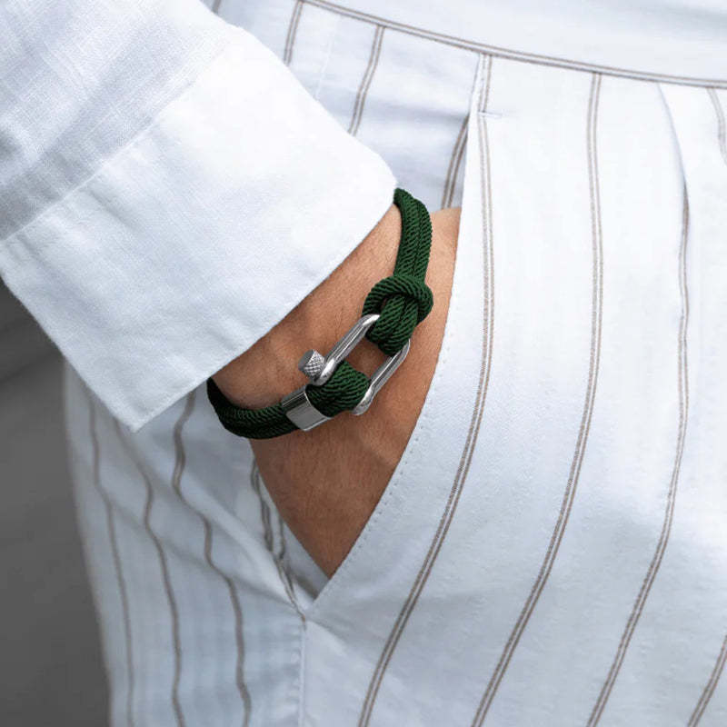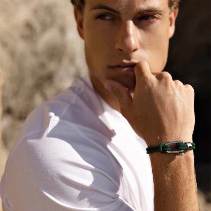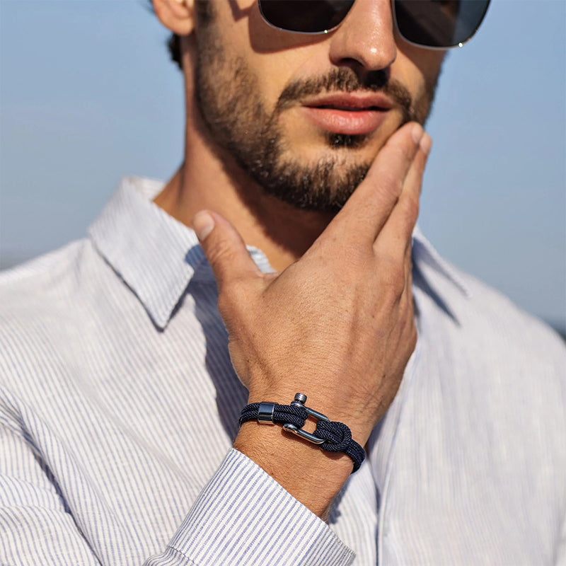 The Nautical Bracelet captures the essence of the sea, a simple reminder for the man who would always rather be sailing. Easy to wear everyday or able to be dressed up for formal occasions, it is waterproof and fast-drying, retaining its shape over time.