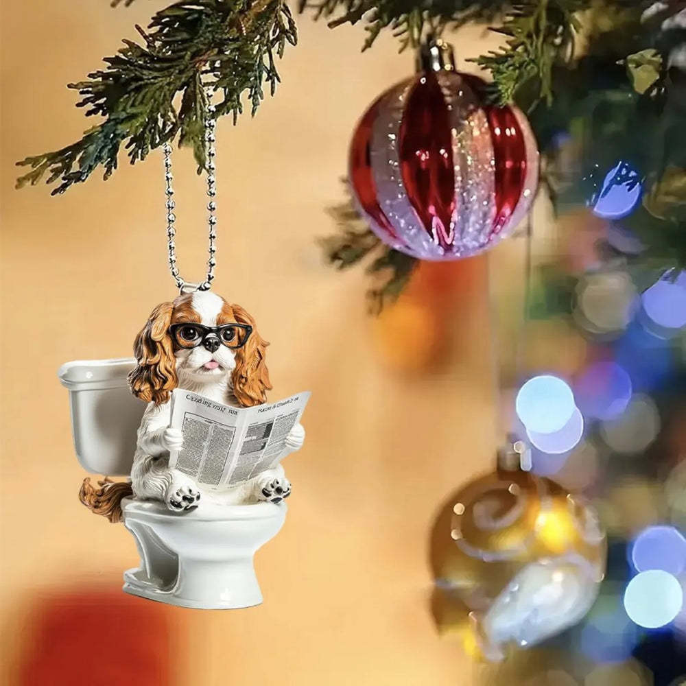 Designed for pet lovers with a sense of humor, this Dog Sitting On Toilet Ornament is perfect for hanging on your Christmas tree, car rearview mirror, desk, or anywhere a laugh is needed. It also makes a great gift for friends, family, or anyone who loves dogs and quirky decor.