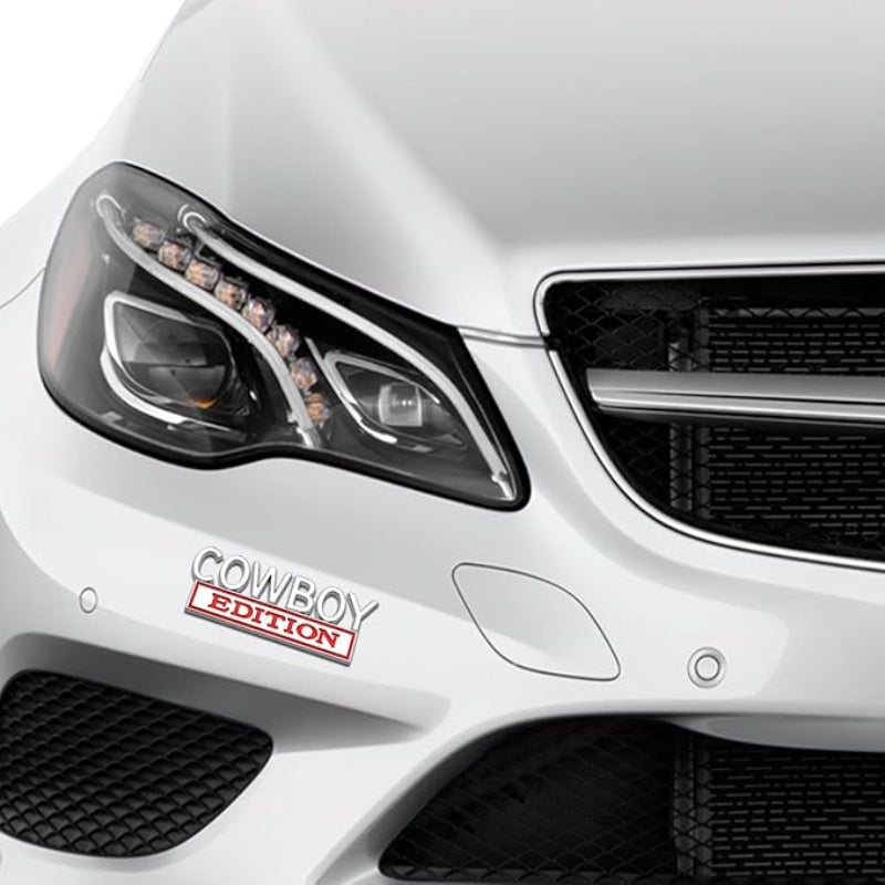 Add a touch of humor and personality to your vehicle with the "Cowboy Edition" 3D Badge Stickers. These fun, eye-catching badges are perfect for cars, trucks, SUVs, motorcycles and more. Made from durable and sticky zinc alloy, these high-quality badges are easy to apply and are designed to enhance the style and smarts of your vehicle.