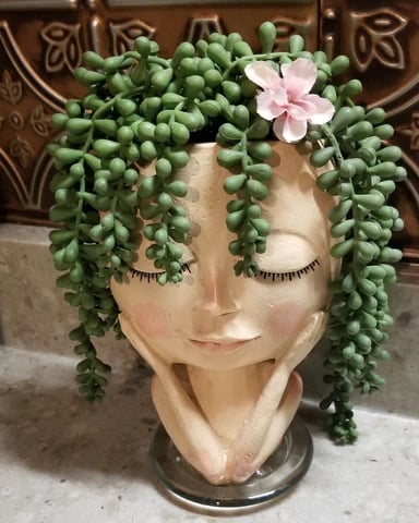 🌱 Watch her hair grow as you plant your favorite succulents, herbs, cacti, or other small plants you own.