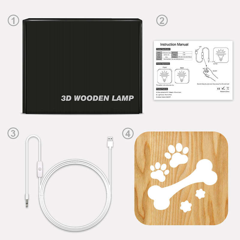 • Product accessories: Wooden night light + 1 USB cable + 1 manual + 1 (color box packaging)