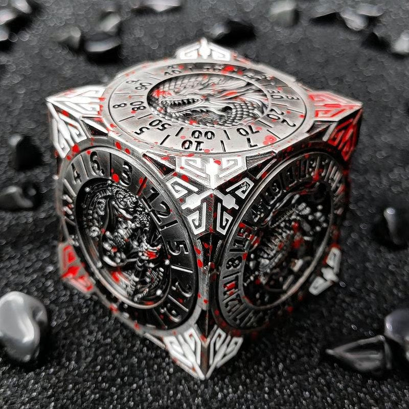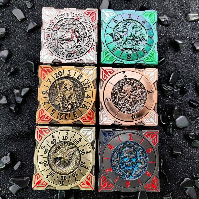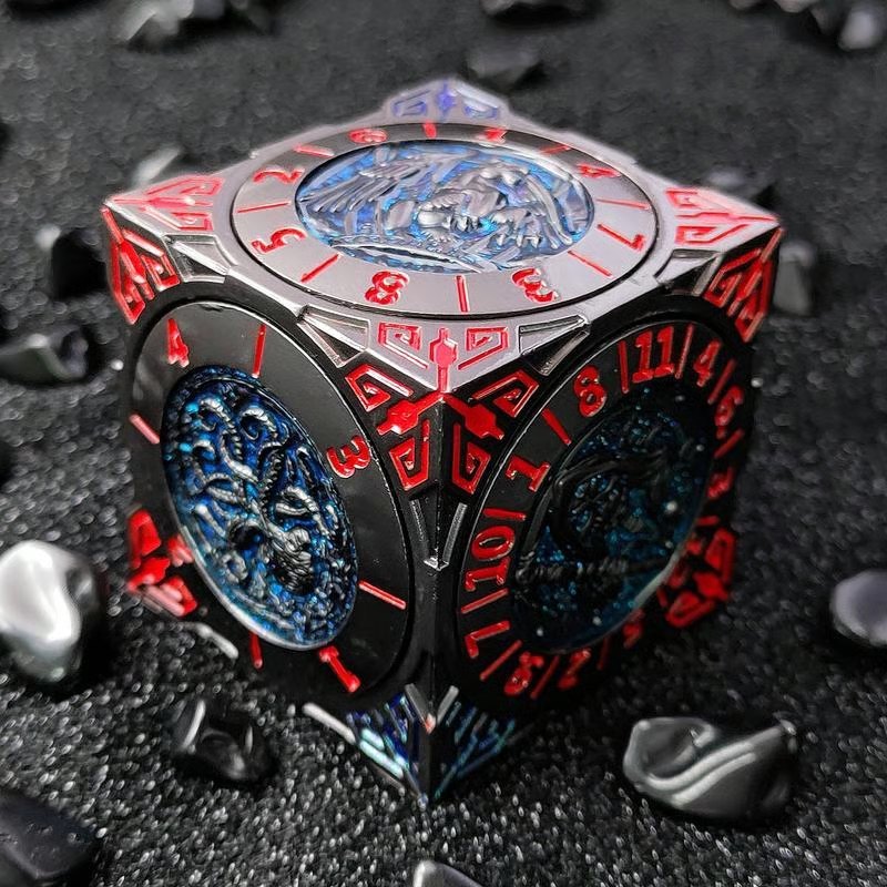 The artwork includes legendary creatures such as Cthulhu, Mimic, Minotaur, Beholder, Phoenix, and Dragon. These fantasy-themed reliefs transport players into epic battles, enhancing the immersion and excitement of every game night·Finger Press Stop or Free Spin: Equipped with a built-in gyroscope system, the spinner dice offers ultra-smooth rotation.