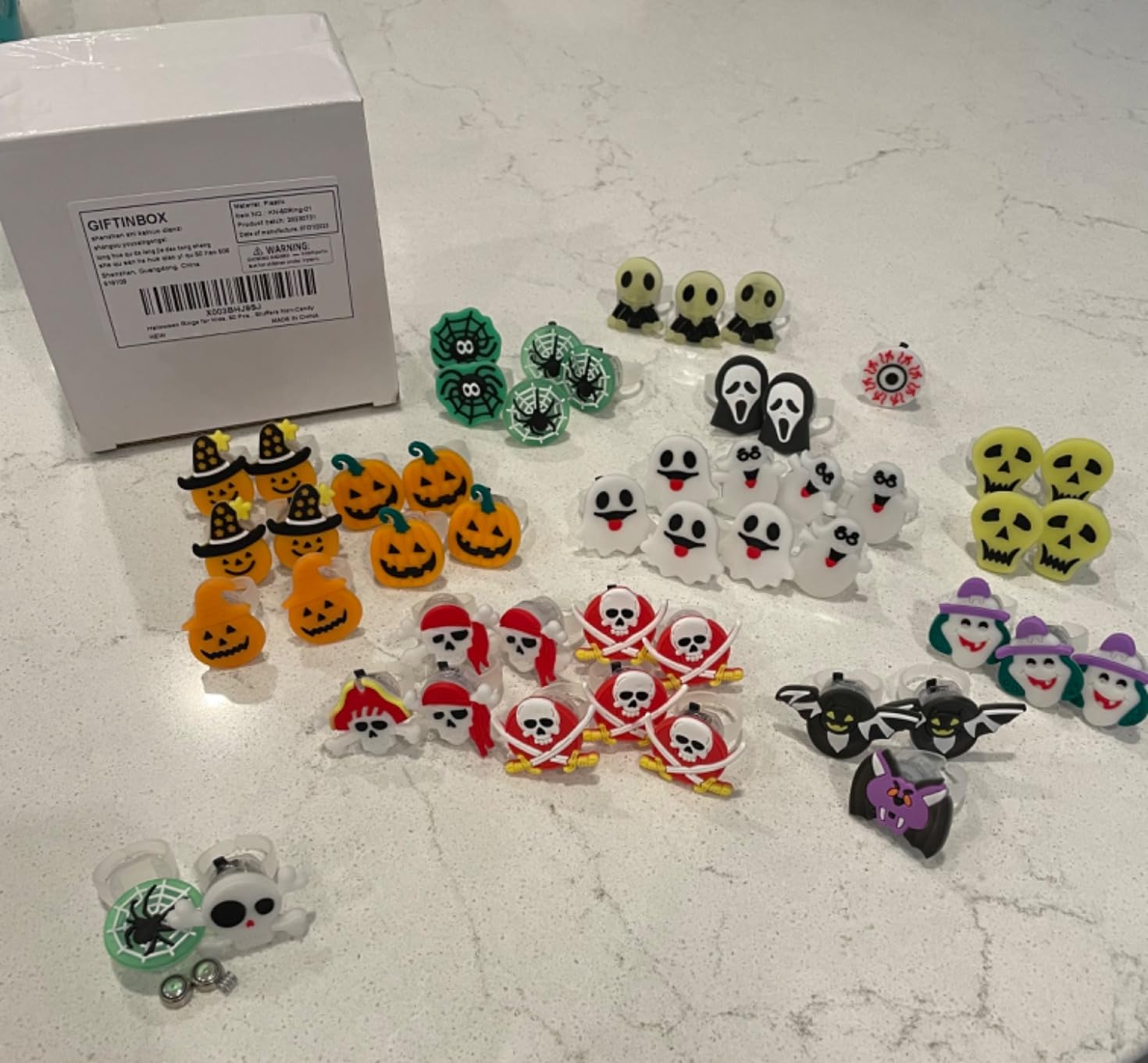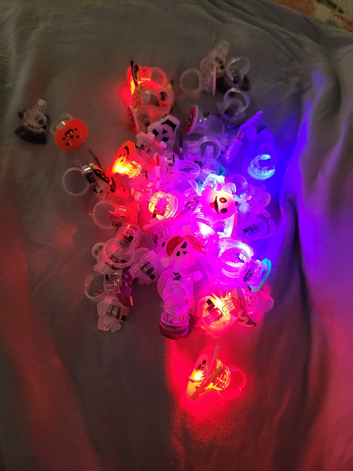 ✔ 50pcs assorted LED rings – pumpkins, ghosts, skulls, bats, spiders, eyeballs & more.