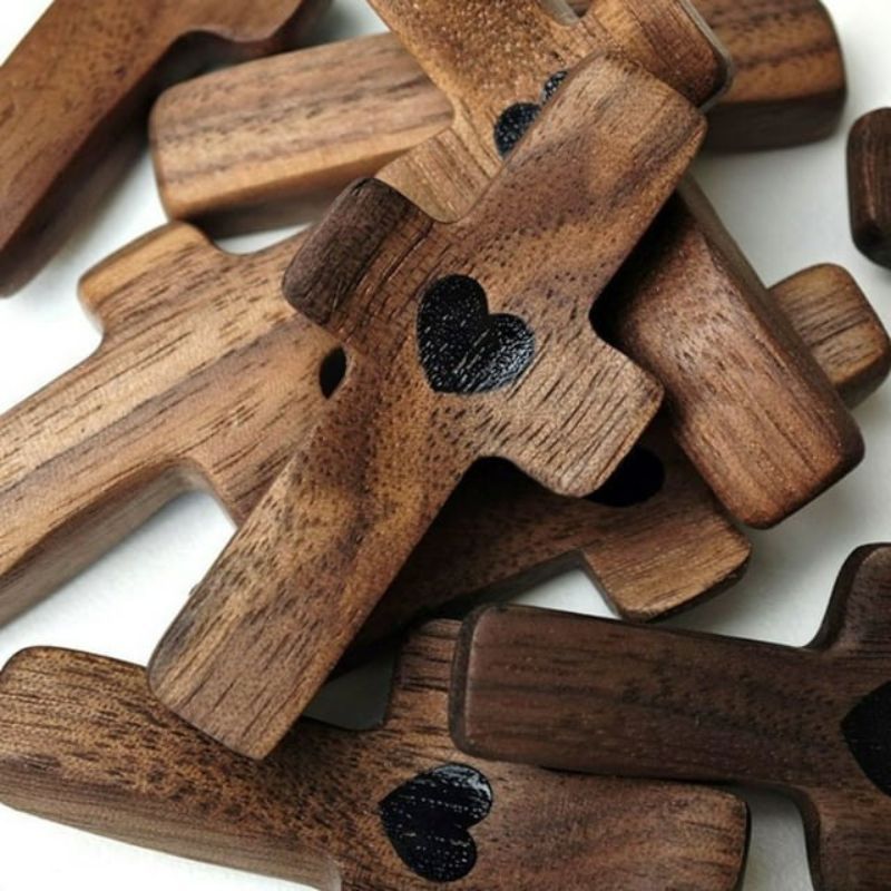 We are devout Christian craftsmen. These crosses are carved from black walnut. We believe in the power of prayer and carved these wooden crosses. Using a cross can be a calming influence in stressful situations and remind us not to forget about world peace and love.
