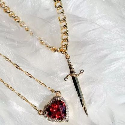 - Size: Heart necklace 17.7+2 inches, sword necklace 19.7+2 inches
