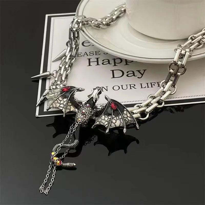 Make a bold statement with our Gothic Exaggerated Imprisoned Flying Dragon Necklace!