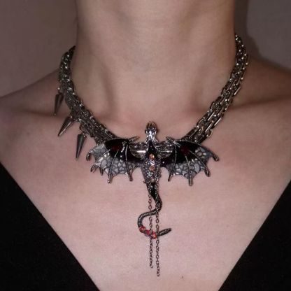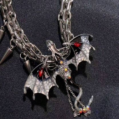 😈Elevate your style with our Gothic Exaggerated Imprisoned Flying Dragon Necklace – where fantasy meets fashion in a captivating display around your neck.