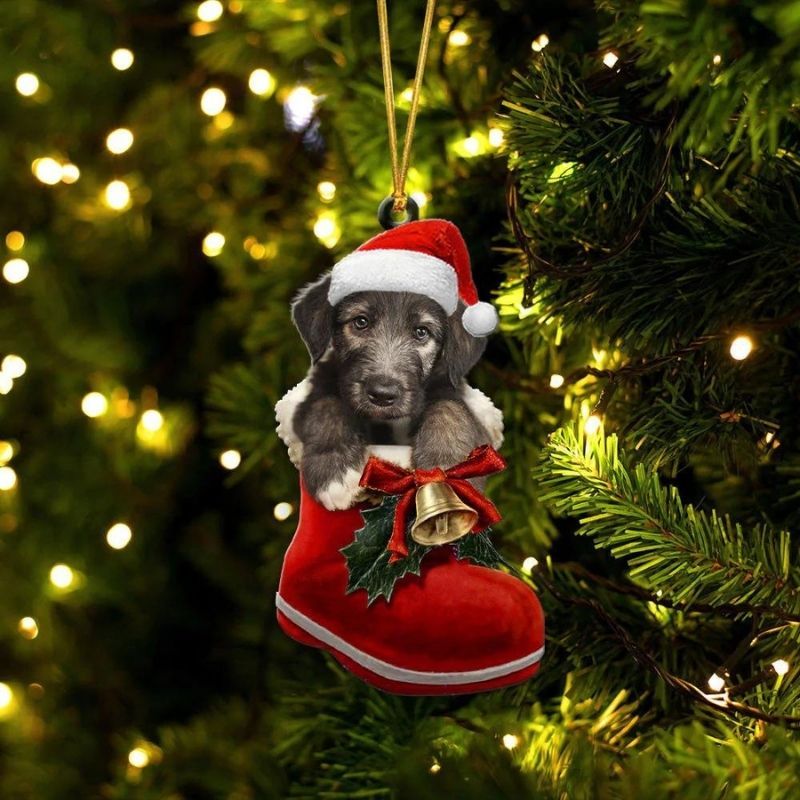 Irish Wolfhound In Santa Boot Christmas Hanging Ornament SB168