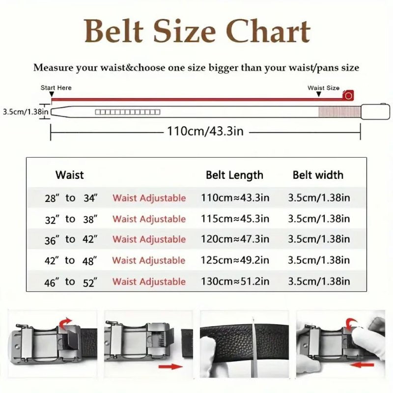 - 1 x Leather Ratchet Belt With Adjustable Buckle - LR004