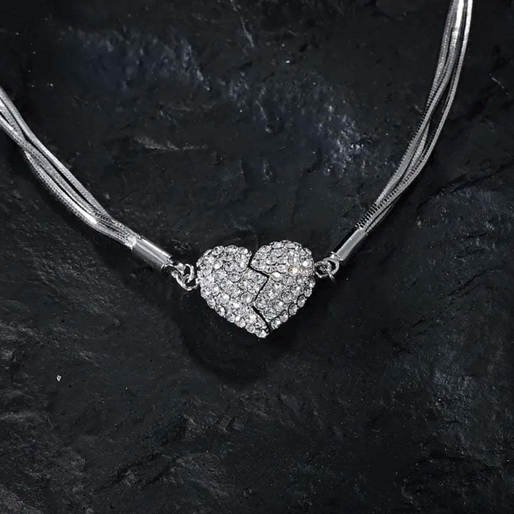 Double-sided wearing diamond-set magnetic love pendant design, making it different and unique made with high-quality materials, ensuring long-lasting durability.