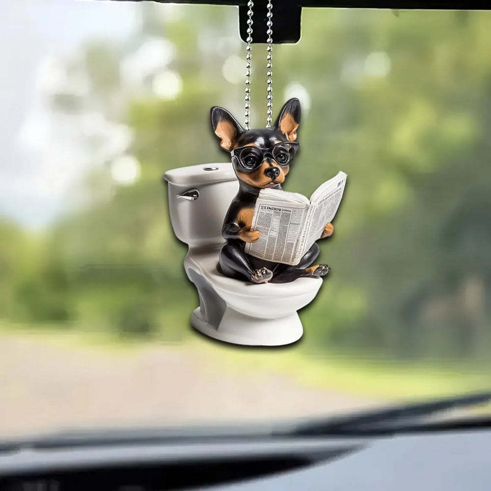 Miniature Pinscher - Dog Sitting On Toilet Ornament OT053