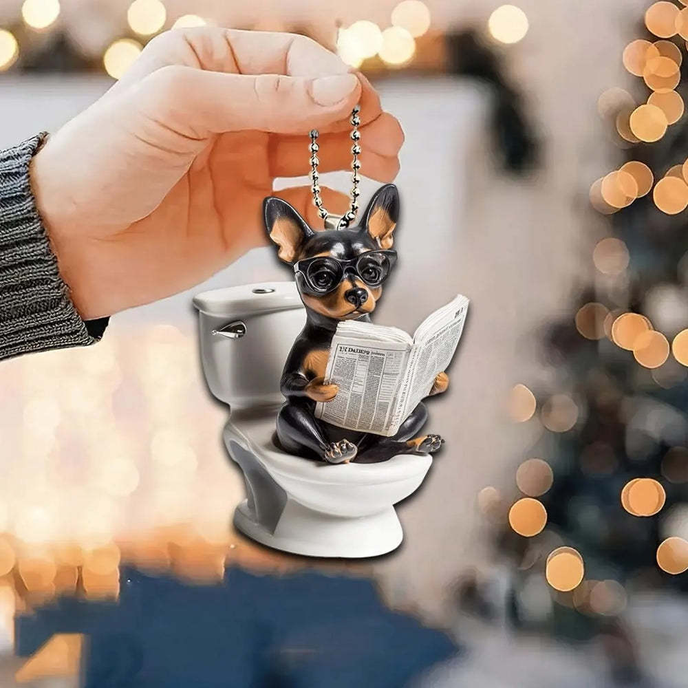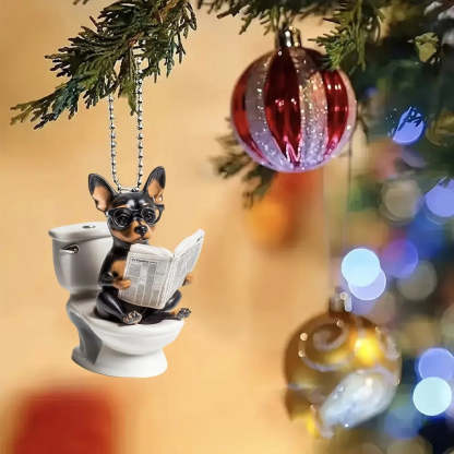 Designed for pet lovers with a sense of humor, this Dog Sitting On Toilet Ornament is perfect for hanging on your Christmas tree, car rearview mirror, desk, or anywhere a laugh is needed. It also makes a great gift for friends, family, or anyone who loves dogs and quirky decor.