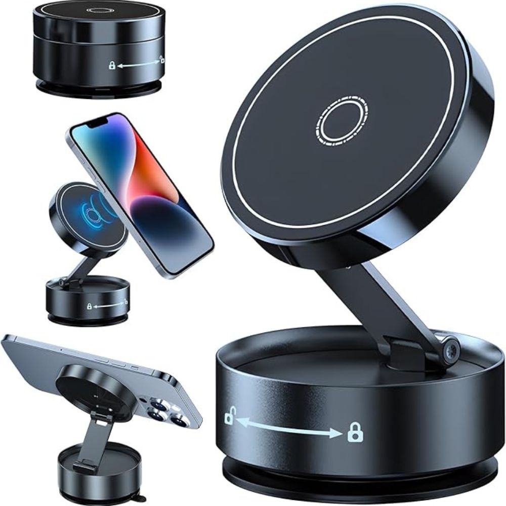 The Magnetic Phone Holder offers versatile mounting options - whether on your car's dashboard, windshield, or any flat surface - thanks to its secure suction cup and sturdy magnetic base.