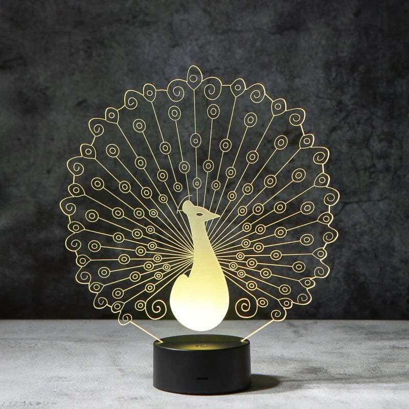 The Peacock 3D LED Illusion Lamp is a combination of art and technology that creates an optical 3D illusion and plays tricks on the eyes. From afar, you will see the design, but as you get up close, you see a thin acrylic glass sheet that's completely flat. It's bound to dazzle and impress your guests while always lighting up the room and your lives.