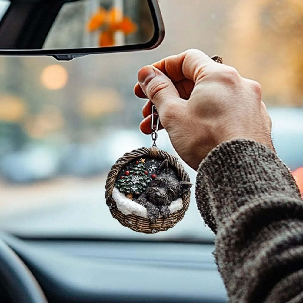 Our Mini Baskets Ornament adds a touch of whimsy and warmth to your home. Perfect for dog lovers, this decor features a charming and playful design depicting a peacefully sleeping pooch. Whether you hang it on your Christmas tree, use it as a keychain, or simply display it on your bookshelf, it'll bring a touch of cheer to any space.