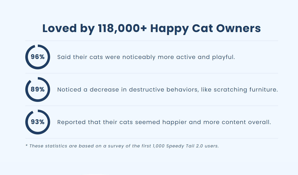 Most cat toys are either too slow, too noisy, or just plain boring. They get stuck under furniture and wear out fast. The Speedy Tail 2.0 provides endless entertainment, works smoothly on any surface, and is incredibly durable - saving you time and money.