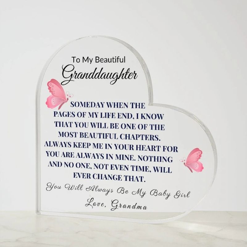 To My Granddaughter - From Grandma - Someday When The Pages Of My Life End - Heart Shaped Acrylic Plaque