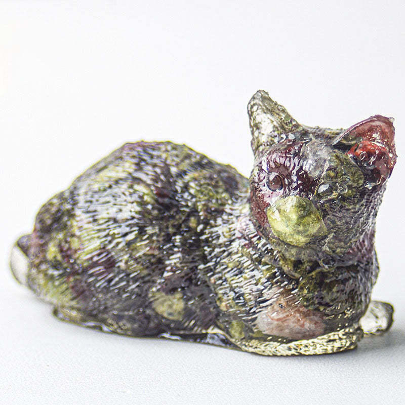 • 1 x Handmade Natural Crystal Gemstone Lying Cat - Unakite