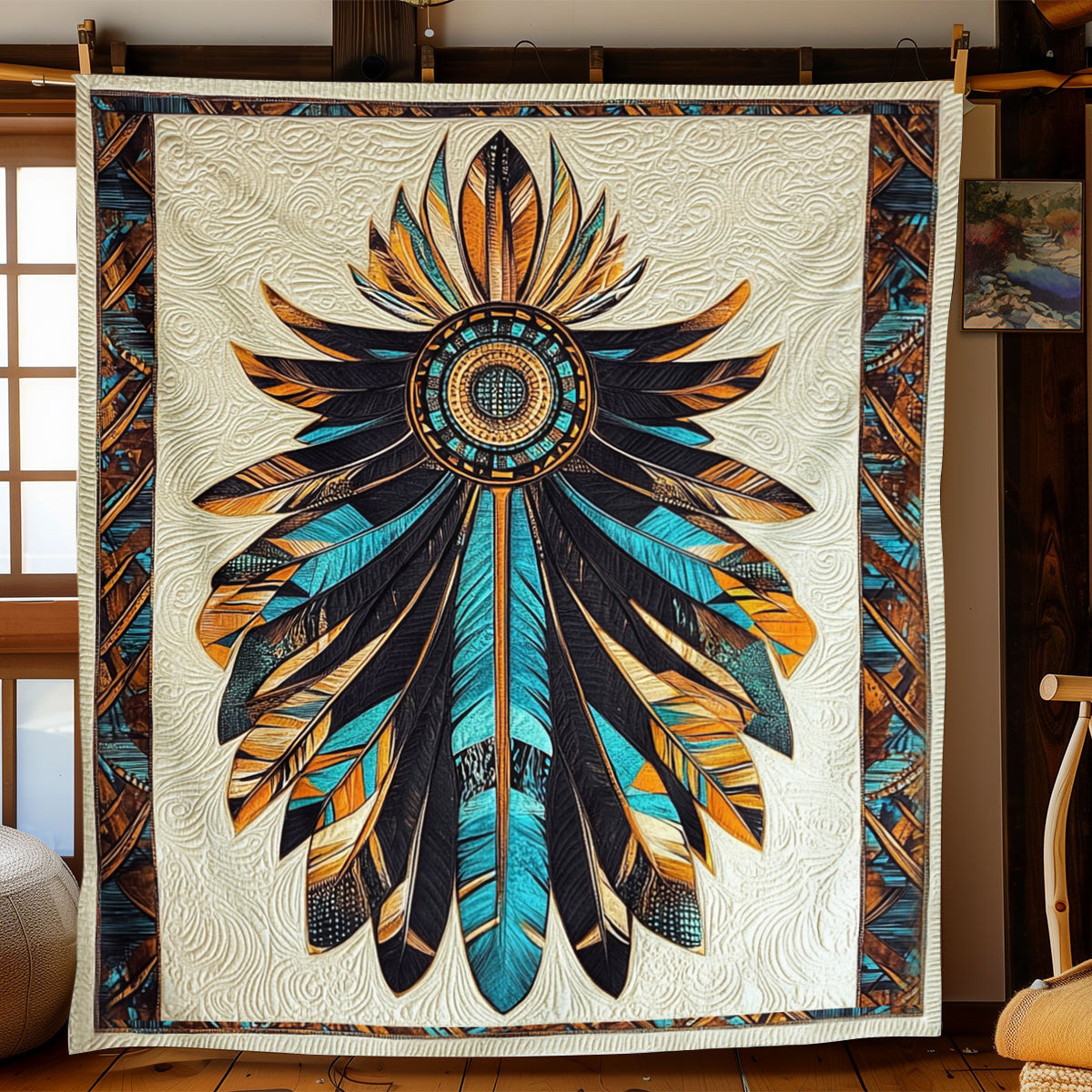 Vintage Feather Headdress Blanket - C018 - Premium Blanket
