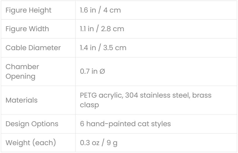 Each compact, acrylic kitty holds a lock of fur, whisker, or loving note—keeping your cherished feline close on keys, backpacks, or zippers wherever life takes you.